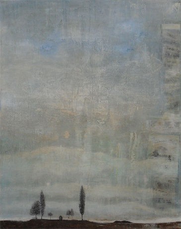 collage, newspaper, acrylic on canvas. 70 x 100 cm