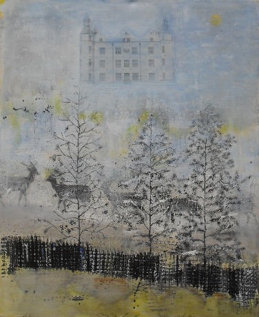 collage, paper, acrylic on canvas. 80 x 100 cm
